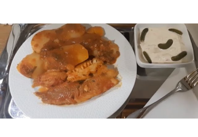 Προσθέτουμε το ψάρι και το σκόρδο.