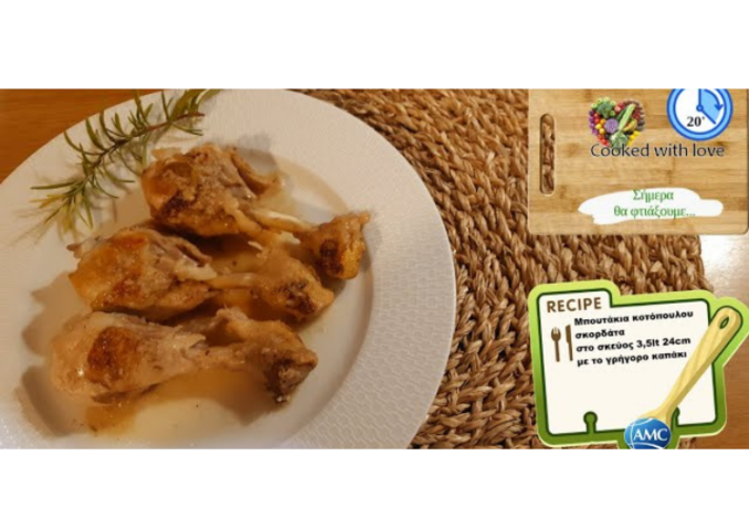 Προθερμαίνουμε το σκεύος στο 7, και ρυθμίζουμε το audiotherm στη ‘μπριζόλα’. Τσιγαρίζουμε στεγνά τα μπουτάκια από όλες τις πλευρές.