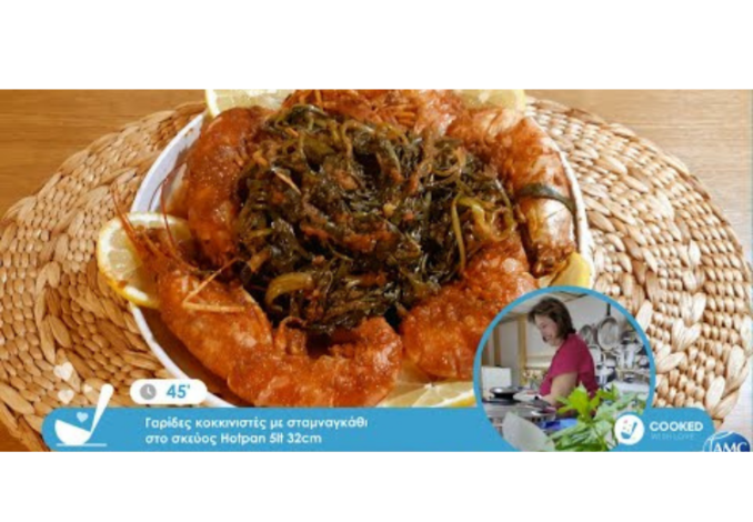 Γαρίδες κοκκινιστές με σταμναγκάθι