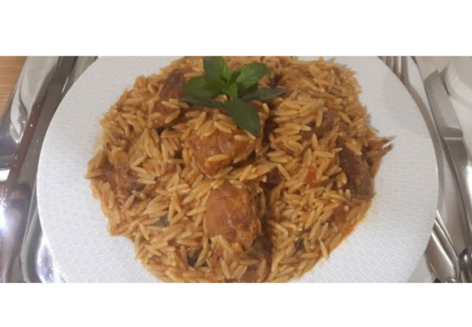 Προσθέτουμε το κριθαράκι και το νερό, το φτάνουμε σε θερμοκρασία βρασμού. Κλείνουμε το καπάκι και το μάτι, και το αφήνουμε 10’ πάνω στο μάτι.
