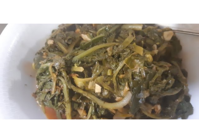 Με το μάτι στο 7, τσιγαρίζουμε το κρεμμύδι και το σκόρδο με ελαιόλαδο. Προσθέτουμε σταδιακά τα χόρτα και ανακατεύουμε για να μαραθούν. Προσθέτουμε όλα τα υπόλοιπα υλικά και ανακατεύουμε. Κλείνουμε το καπάκι και βράζουμε για 2’.