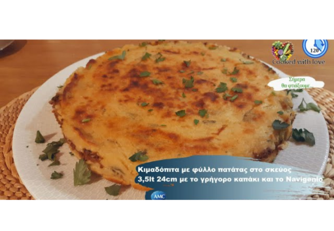 Σε ένα μπολ φτιάχνουμε την ζύμη και την χωρίζουμε στα 2. Στο πάτο του 3.5lt βάζουμε χαρτί ψησίματος με ελαιόλαδο. Ανοίγουμε το 1ο φύλλο στον πάτο. Προσθέτουμε την γέμιση μαζί με μέρος από τα τυριά και ανοίγουμε το 2ο φύλλο από πάνω. Προσθέτουμε το υπολειπόμενα τυριά από πάνω και τον κρόκο. Ανοίγουμε το μάτι στο 2 και βάζουμε το navigenio ανάποδα στο 1ο πεδίο για 60’.