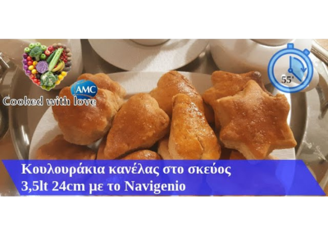 Στο σκεύος έχουμε βάλει χαρτί ψησίματος και ηλιέλαιο. Ανοίγουμε το μάτι στο 2, τοποθετούμε μέσα τα κουλουράκια, και τα αλείφουμε με αυγό. Στην συνέχεια, καλύπτουμε τα κουλουράκια με το Navigenio ρυθμισμένο στο 1ο πεδίο για 35’. Επαναλαμβάνουμε την διαδικασία για την υπόλοιπη ζύμη.