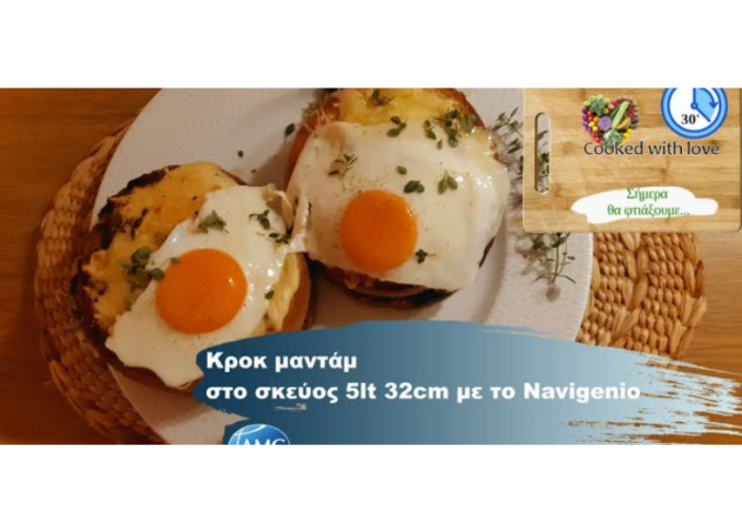 Σε ένα τηγάνι, αλείφουμε με μια κουταλιά ελαιόλαδο και προσθέτουμε τα αυγά μάτια. Ανοίγουμε στο 5, ρυθμίζουμε το audiotherm στην ένδειξη ‘μπριζόλα’. Βάζουμε 5γρ βούτυρο στο σκεύος και βάζουμε το ψωμί στο 7. Ψήνουμε τα ψωμάκια και συναρμολογούμε. Βάζουμε για 10’ το navigenio ανάποδα να ξεροψήσουμε.