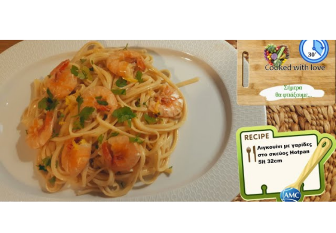 Βάζουμε το μάτι στο 7 και τσιγαρίζουμε το λάδι και σκόρδα, και τις γαρίδες.