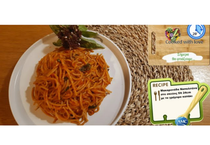 Ανοίγουμε το μάτι στο 7 περιμένουμε να πάρει μια βράση και προσθέτουμε τα μακαρόνια. Κλέινουμε το καπάκι και το μάτι αλλά αφήνουμε το σκεύος πάνω στο μάτι για 15’ Στα 7’ ανοίγουμε και ανακατεύουμε. Προσθέτουμε το υπόλοιπο βασιλικό και λεμονοθύμαρο και σερβίρουμε.