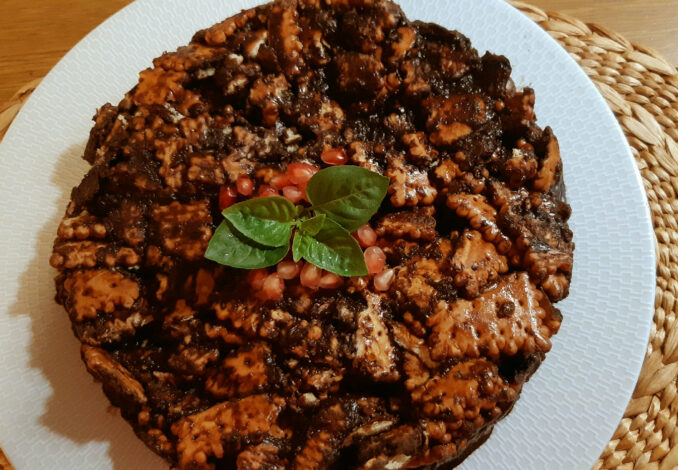 Το αφήνουμε να κρυώσει για λίγο πριν το βάλουμε μέσα στο ψυγείο. Μετά από οκτώ ώρες το βγάζουμε από το ψυγείο και το βάζουμε σε μία πιατέλα. Αφαιρούμε το χαρτί ψησίματος και σερβίρουμε.