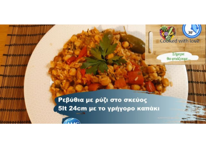 Φουσκώνουμε τα ρεβίθια από το προηγούμενο βράδυ. Ανοίγουμε το μάτι στο 7 και προσθέτουμε το νερό. Κλείνουμε με το sec quick και ανεβάζουμε το μάτι στο 9.