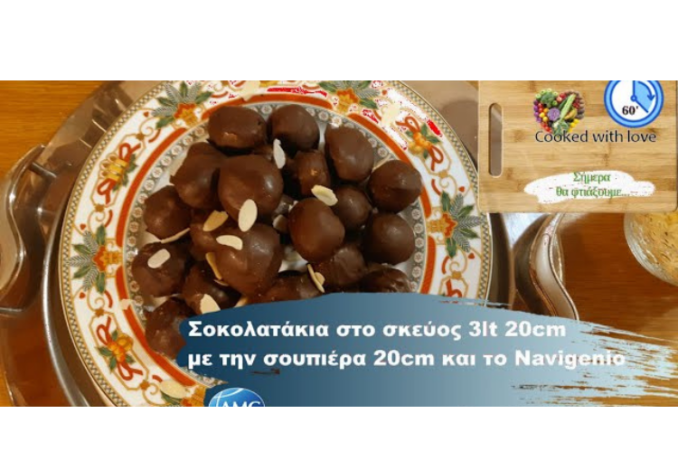 Ανοίγουμε το Navigenio στο 6 παίρνουμε το σκεύος με 1 δάχτυλο νερό μέσα και από πάνω τη σουπιέρα μας για να φτιάξουμε ben mari προσθέτοντας την κουβερτούρα. Σε 4-5’, ή όταν λιώσει όλη η σοκολάτα, επικαλύπτουμε τις μπάλες μας.