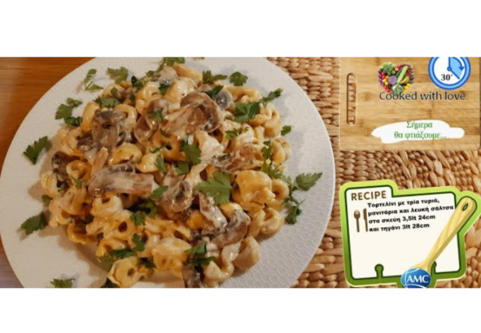 Τορτελίνι με τρία τυριά, μανιτάρια και λευκή σάλτσα