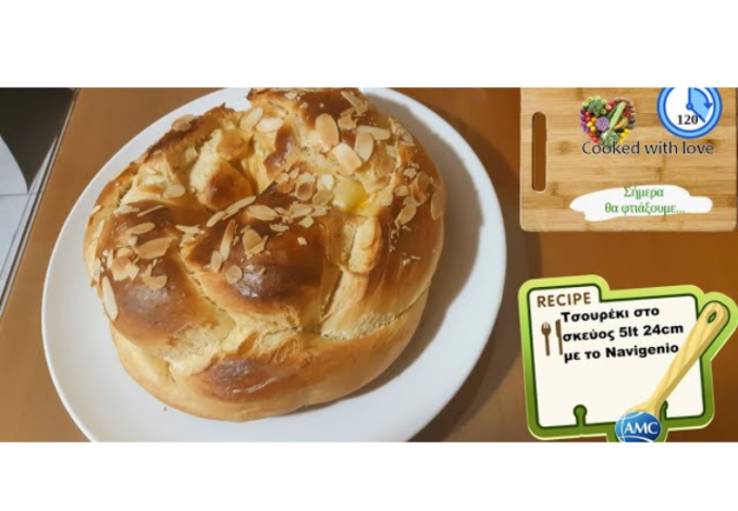 Αλείφουμε τα τσουρέκια με μείγμα αυγού (1 αυγό και 1 κσ κρύο νερό) Χαμηλώνουμε το μάτι στο 1 και προσθέτουμε από πάνω το navigenio στο 1ο πεδίο. Ρυθμίζουμε το audiotherm στα 30’.