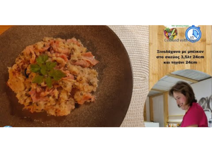 Βάζουμε μία κουταλιά της σούπας λάδι και βάζουμε μέσα το μπέικον. Τσιγαρίζουμε για 1 λεπτό. Κλείνουμε το μάτι και τα αφήνουμε με κλεισμένο καπάκι να ξεροψηθούν.
