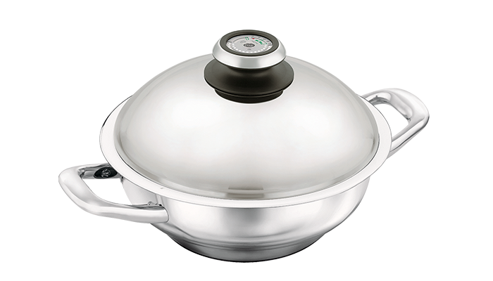 Το τέλεια στρογγυλεμένο, ενιαίο από τον πάτο μέχρι το χείλος σκεύος, είναι ιδανικό για ψητά, κάρι, φιλετάκια κρέατος, τηγανητό ρύζι με λαχανικά και ρυζότο. *Συνδυάζεται με το Secuquick και το Navigenio από πάνω.