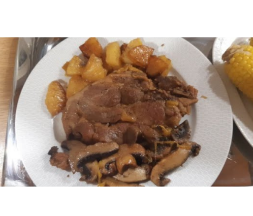 Χοιρινές μπριζόλες γλυκόξινες με μανιτάρια & ανανά